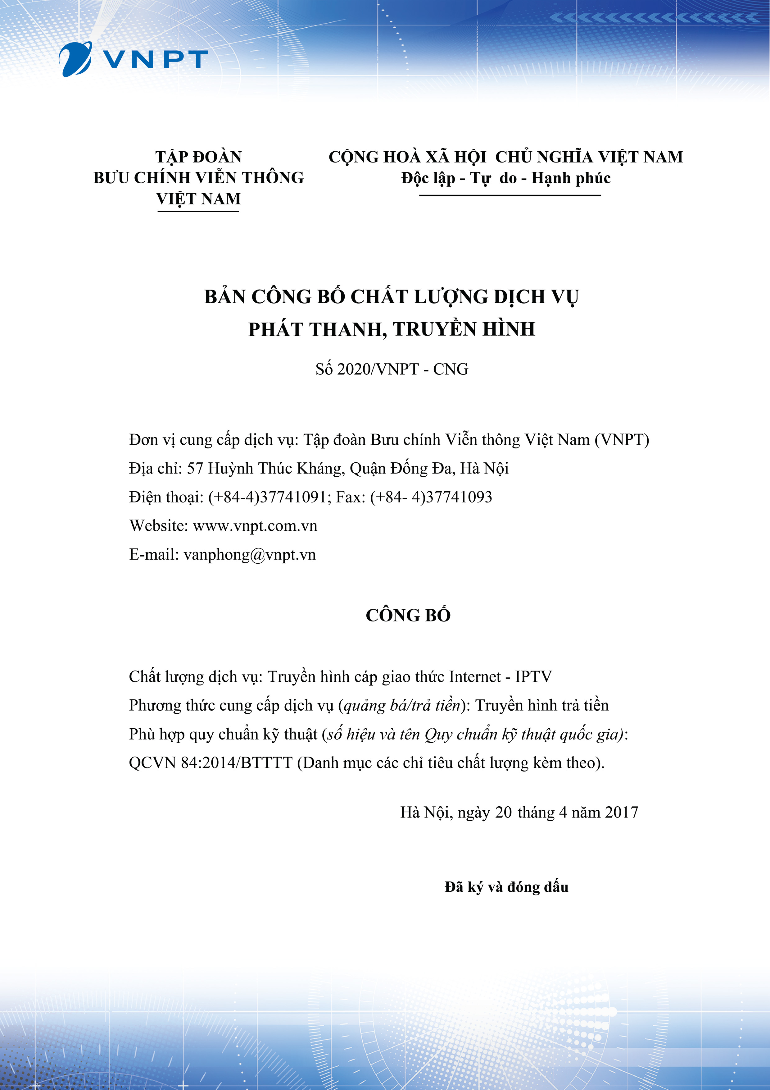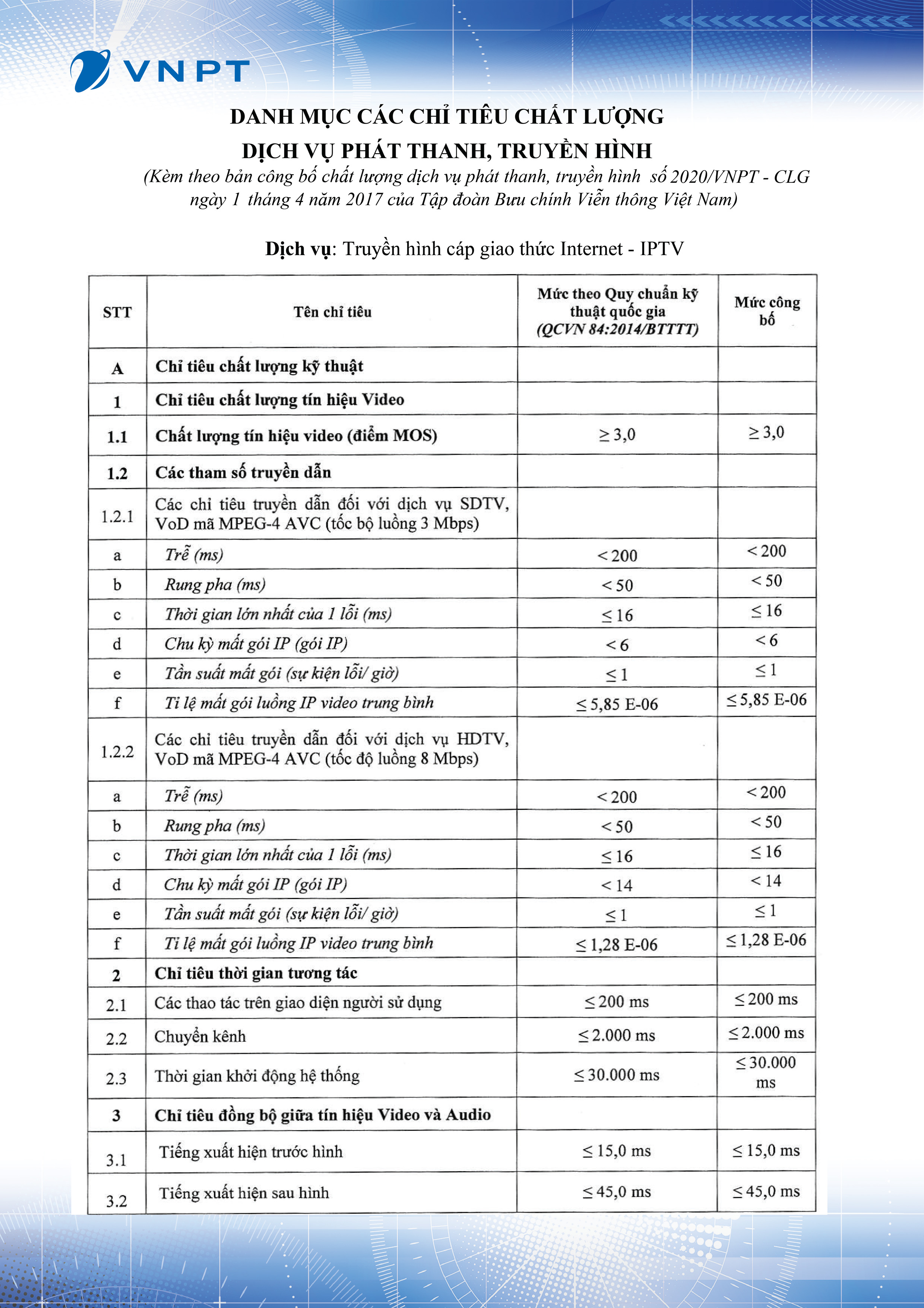6. Công bố chất lượng Dịch vụ truyền hình cáp giao thức Internet - IPTV