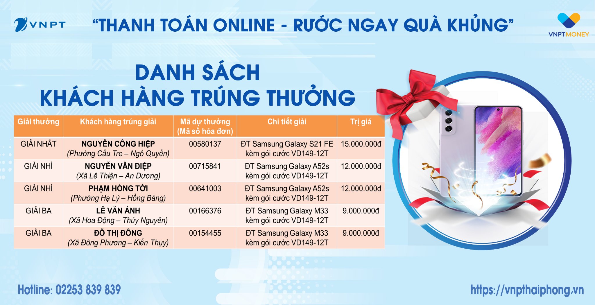 CHÚC MỪNG 5 khách hàng may mắn trúng giải trong chương trình quay thưởng THANH TOÁN ONLINE - RƯỚC NGAY QUÀ KHỦNG