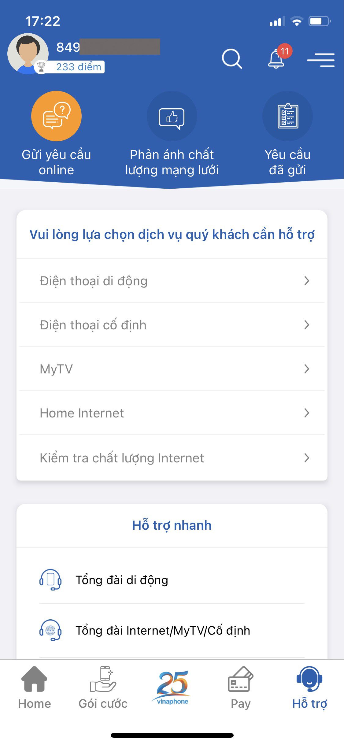 Để báo hỏng dịch vụ internet VNPT, chọn mục “Home Internet”