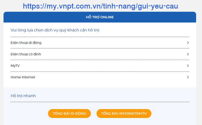 Bước 1: Truy cập Website My VNPT với tính năng Hỗ trợ online tại địa chỉ: https://my.vnpt.com.vn/tinh-nang/gui-yeu-cau