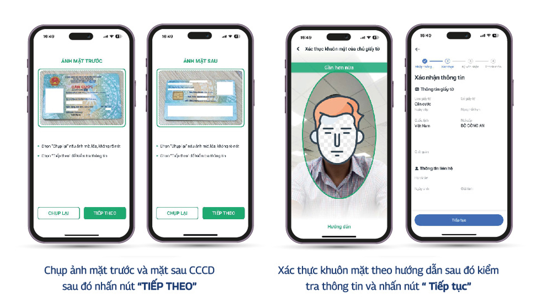 Chụp ảnh mặt trước + mặt sau CCCD và ảnh chân dung để xác minh thông tin.