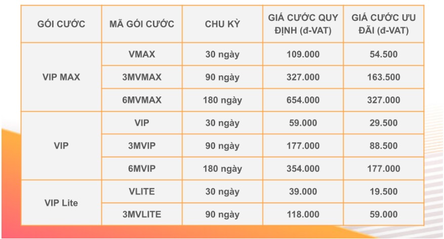 Chương trình áp dụng cho các gói VIP MAX và VIP với chu kỳ 30 ngày, 90 ngày và 180 ngày; riêng VIP Lite áp dụng với các chu kỳ 30 ngày và 90 ngày. Khách hàng được ưu đãi giảm giá 50% các gói trên khi đăng ký trong 3 ngày vàng 01, 02 và 03/02/2026. Sau ưu đãi, mức giá chỉ còn từ 19.500 đồng/tháng, phù hợp với nhiều nhóm khách hàng mới.